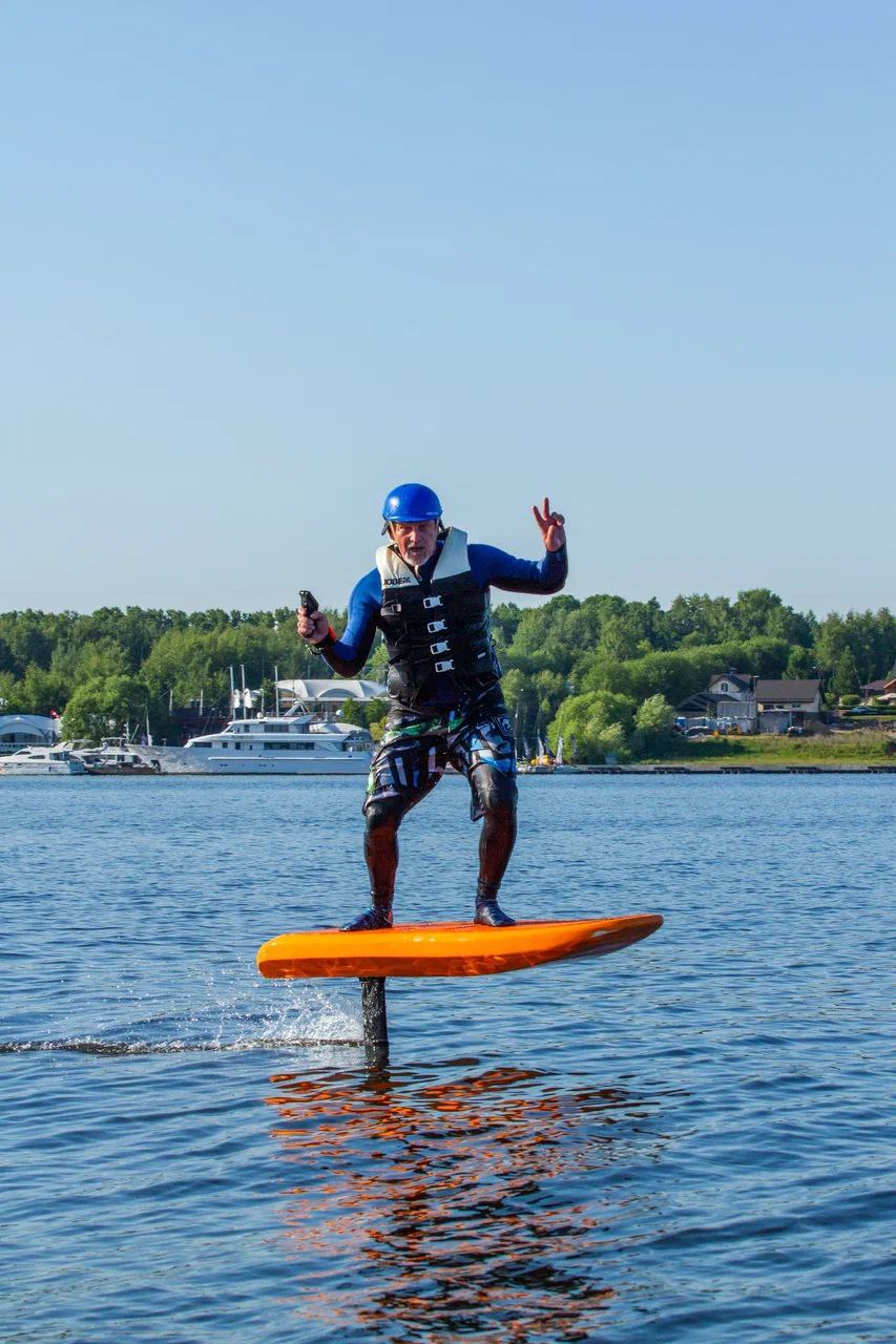 Они первыми в России начали конструировать и делать е-фойлы. Сами на них катаются уже много лет. Поэтому легко научат любого. Вот собственно этим мы и гордимся - в клубе Марабу есть обучение и прокат электро-фойлов.